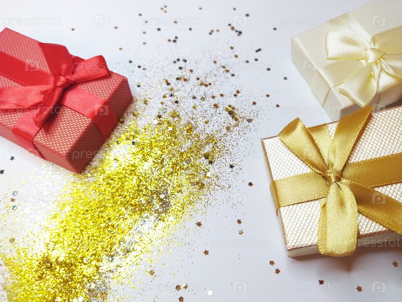 Рождественский, новогодний, праздничный фон с золотым блеском, с местом для текста. Концепция праздничного настроения. Применение блесток в косметологии и кулинарии