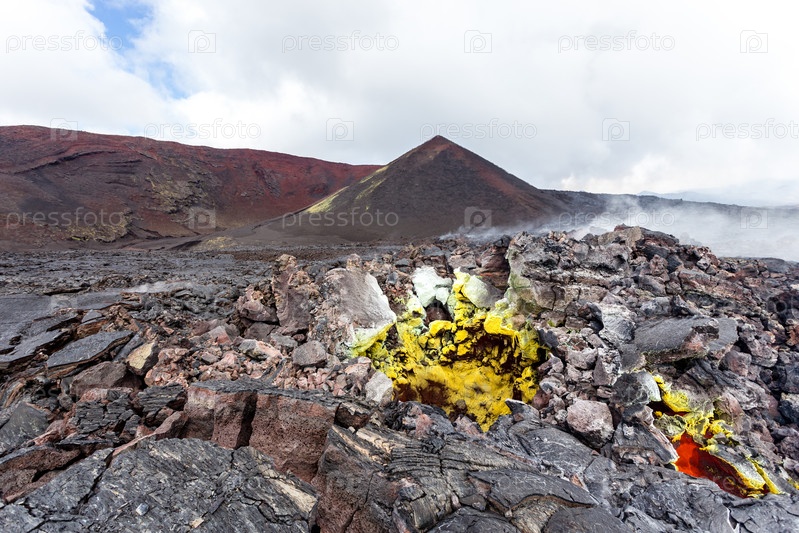 Активные фумаролы у вулкана Толбачик, Камчатка, Россия