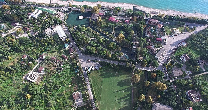 Вид с воздуха на городской пейзаж Нового Афона, Абхазия