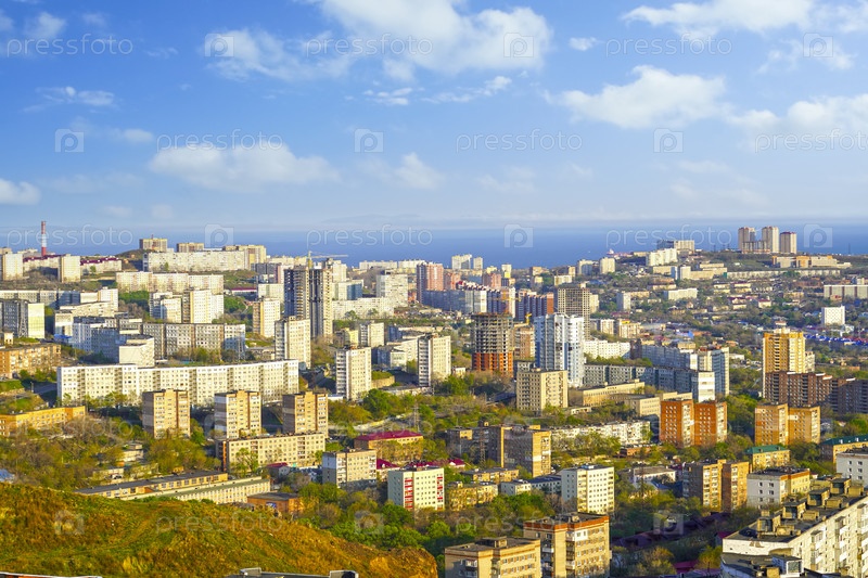 Владивосток, Россия. Городской пейзаж с видом на улицы и архитектуру