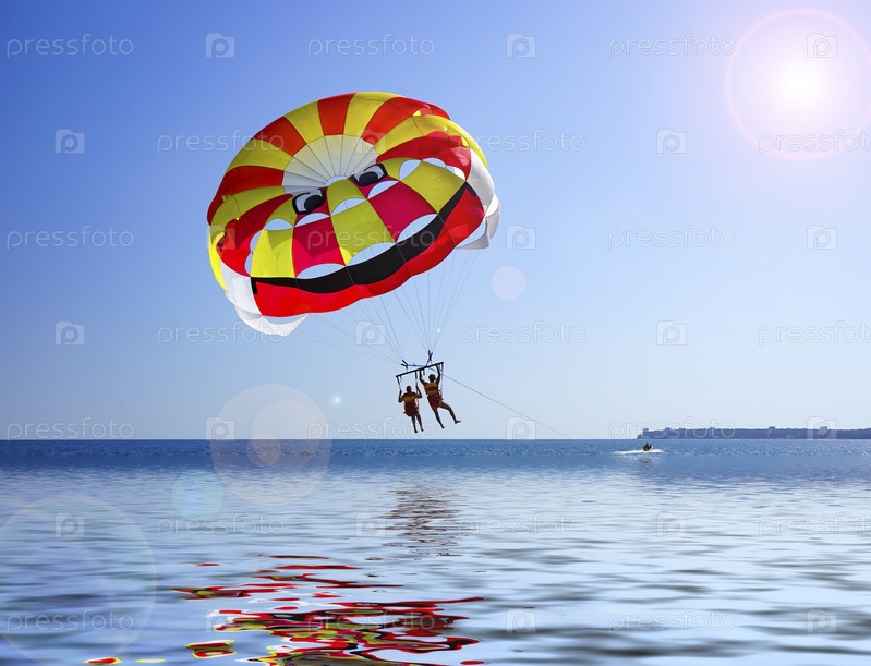 Люди летают на парашюте на фоне морского пейзажа