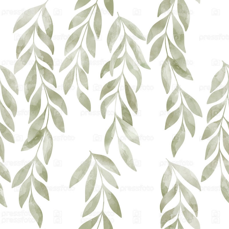 Бесшовный узор с абстрактными акварельными листьями на белом фоне. Идеально подходит для шаблонов дизайна, обоев, упаковки, ткани и текстиля