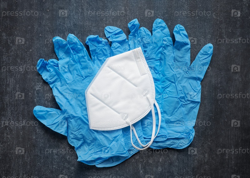 Латексные медицинские перчатки и белая защитная маска. Концепция гигиены и защиты