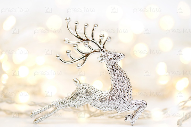 Рождественская композиция. Серебристый олень и огни на заднем плане