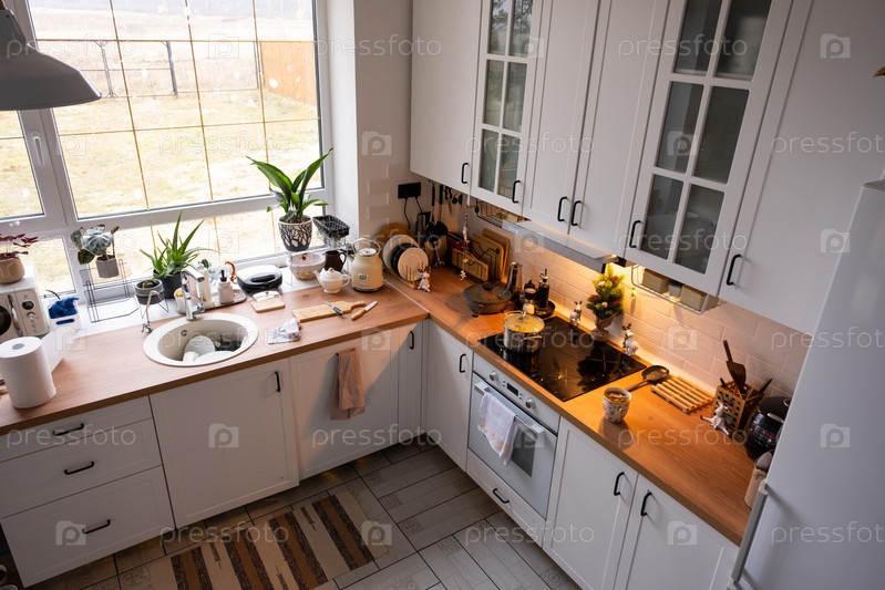 Праздничный новогодний декор и бардак на кухне, приготовление угощений к празднику. Новый год, настроение, домашний интерьер