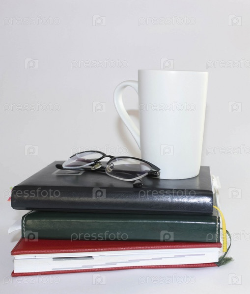 Белая кружка и блокноты