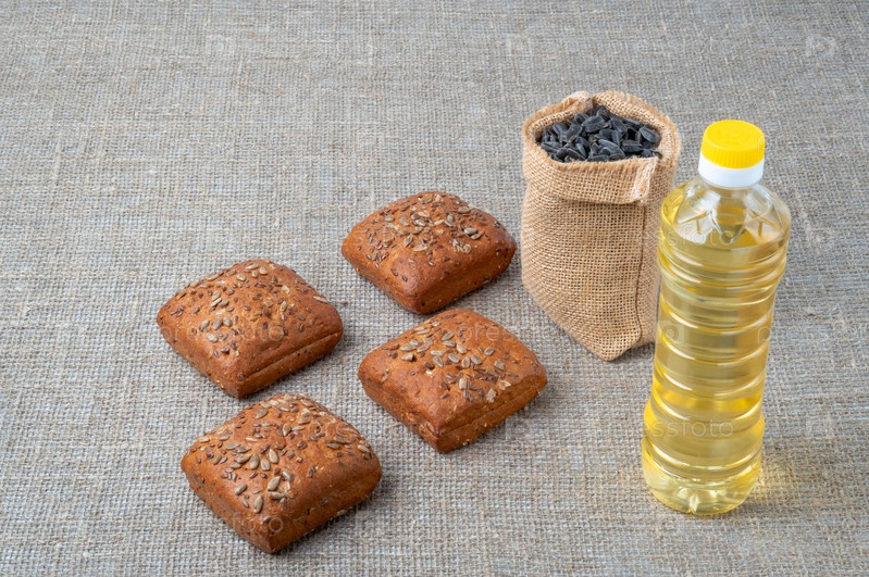 Черный хлеб, масло, семечки. Продукты с подсолнечными семенами