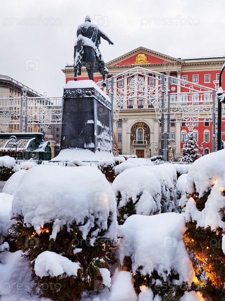 Рождественская ярмарка и украшения возле здания горсовета, мэрии Москвы. Тверская улица