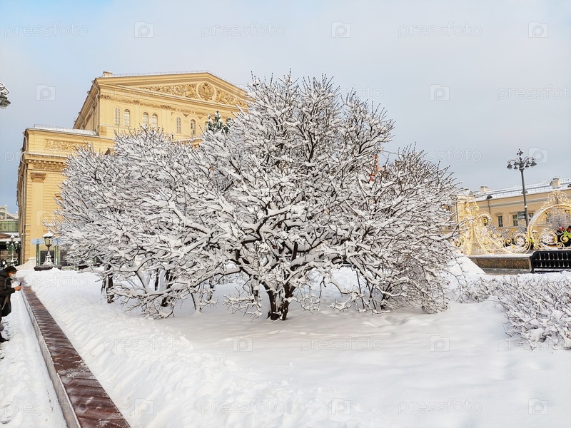 Здание Большого театра в Москве в солнечный зимний день. выборочный фокус