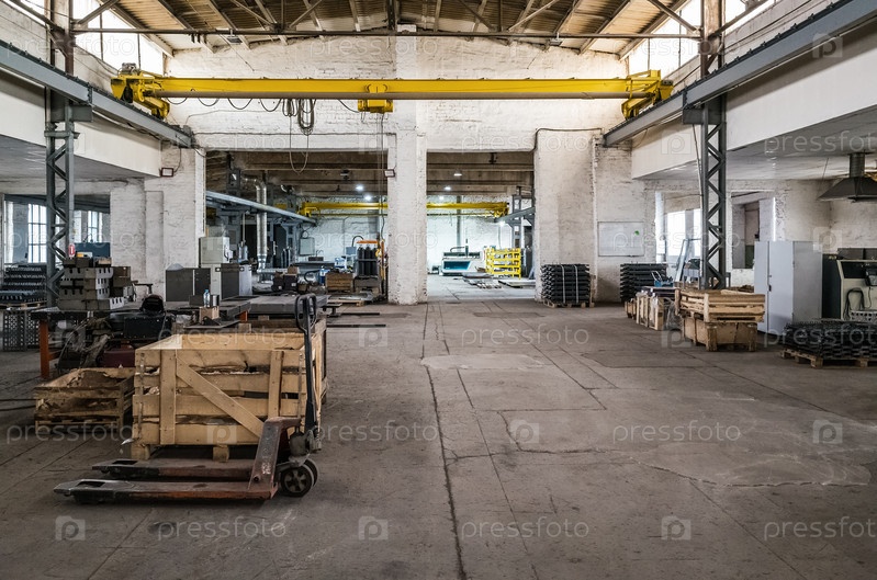 Производственные помещения промышленного предприятия с оборудованием и продукцией. Снимок сделан в России