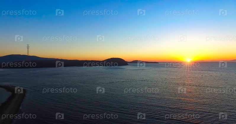 Вид с воздуха на морской пейзаж на закате