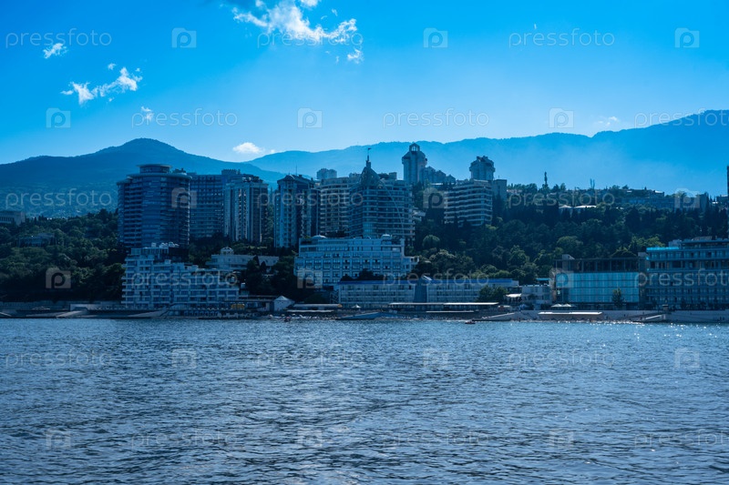 Морской пейзаж с видом на побережье города