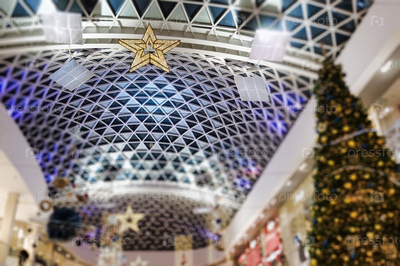Торговый центр, украшенный к новогодним и рождественским праздникам
