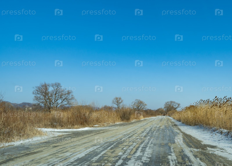 Проселочная дорога на фоне зимнего пейзажа