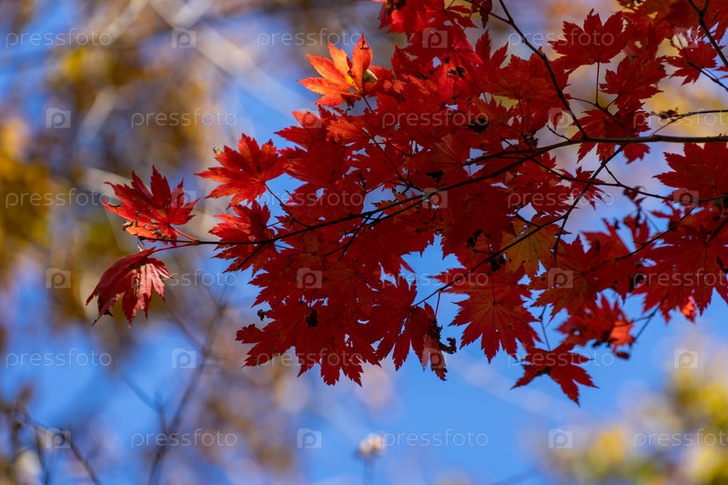 Красные кленовые листья на фоне неба