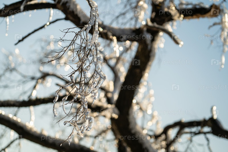 Естественный фон с кристаллами льда на растениях после ледяного дождя