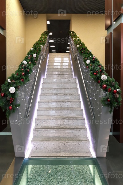 Лестница с новогодней гирляндой