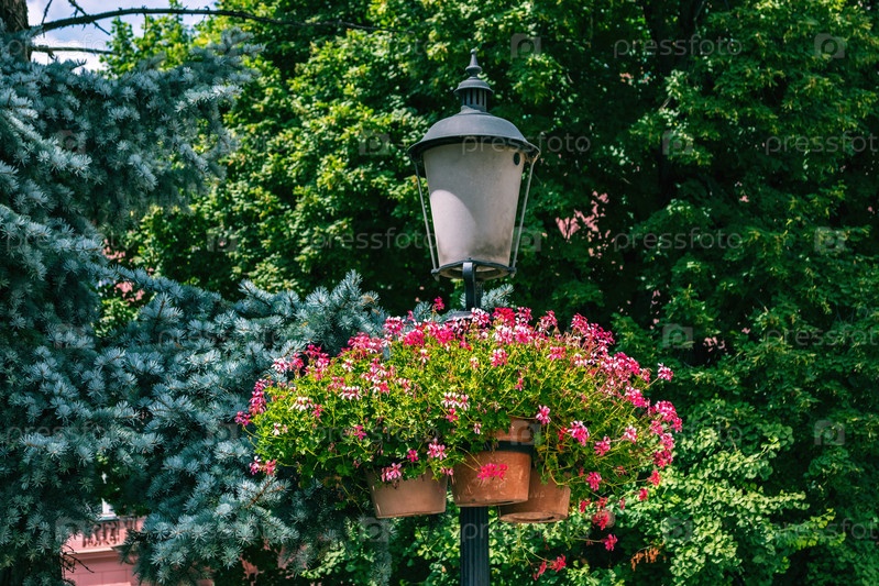 Уличный фонарь и цветы
