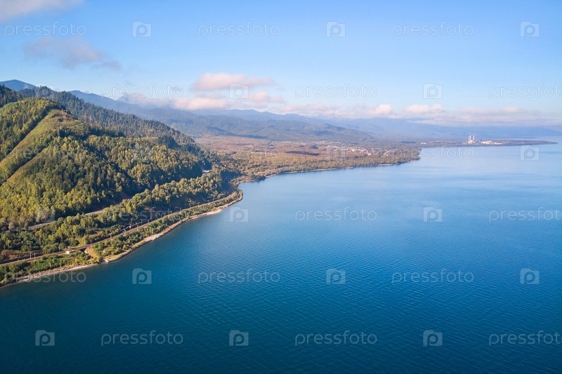 Красивый пейзаж. Горы, лес, дорога вдоль берега Байкала
