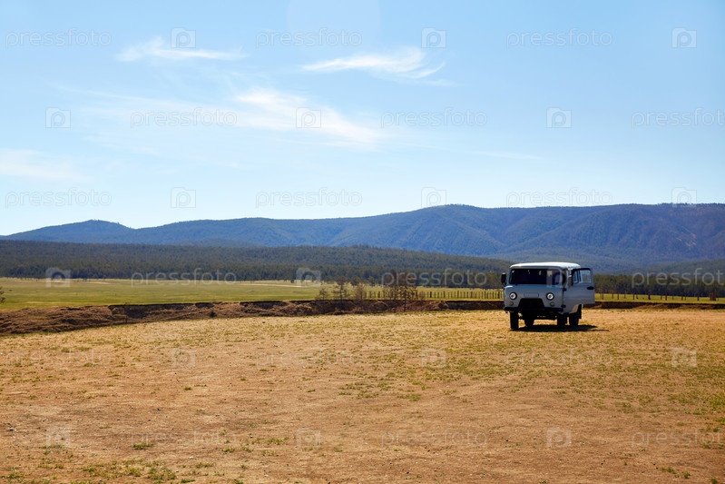 Российский внедорожник, типичный туристический автобус на острове Ольхон