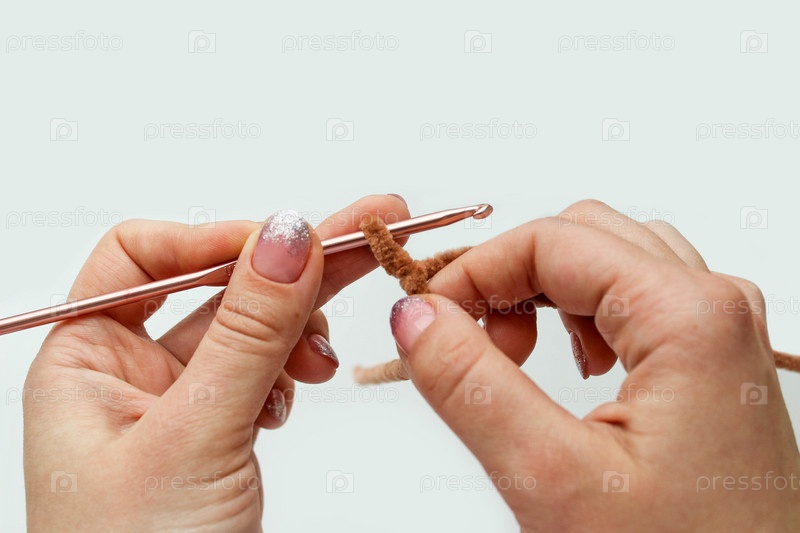 Процесс вязания крючком из плюшевой пряжи. Начинайте вязать цепочку из петель