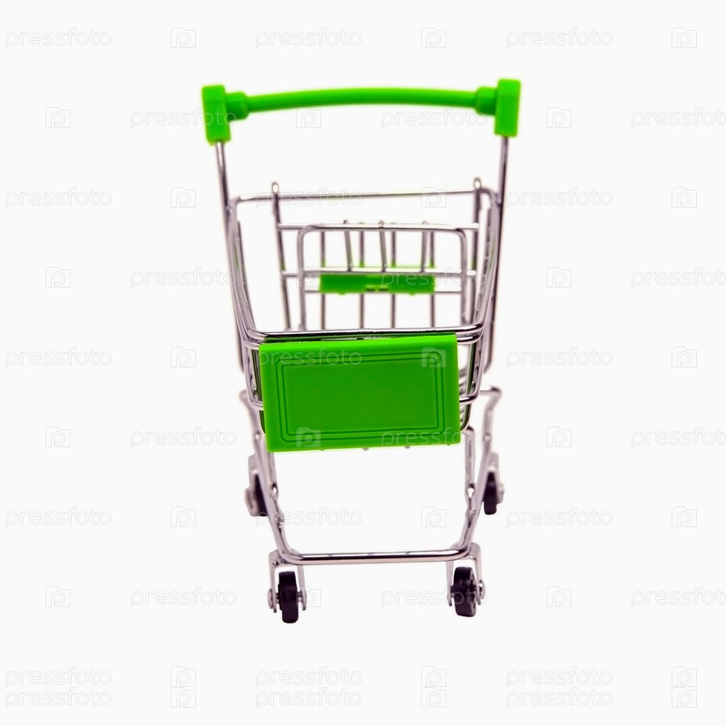 Пустая корзина с зеленой ручкой, изолированная на белом фоне. Передний план