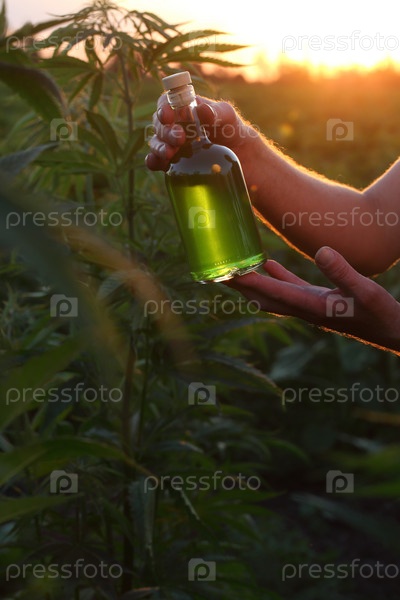 Мужчина наливает конопляное вино из бутылки