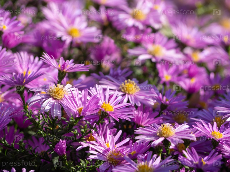 Фоновая текстура цветущих цветов. Осенние цветы Фиолетовые астры под солнцем крупным планом