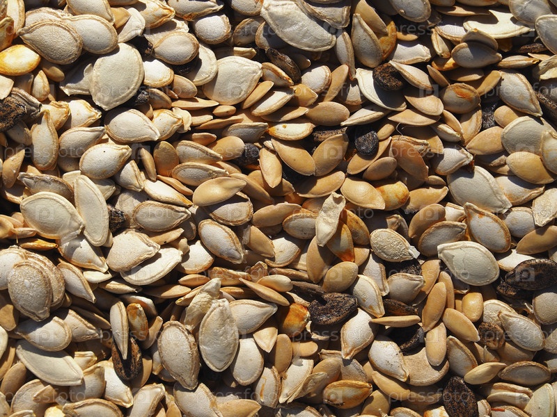 Кормовые смеси для домашних животных и птиц. Зерновая смесь из сушеных семян тыквы, дыни и арбуза в качестве естественного текстурного фона. Фон смеси семян