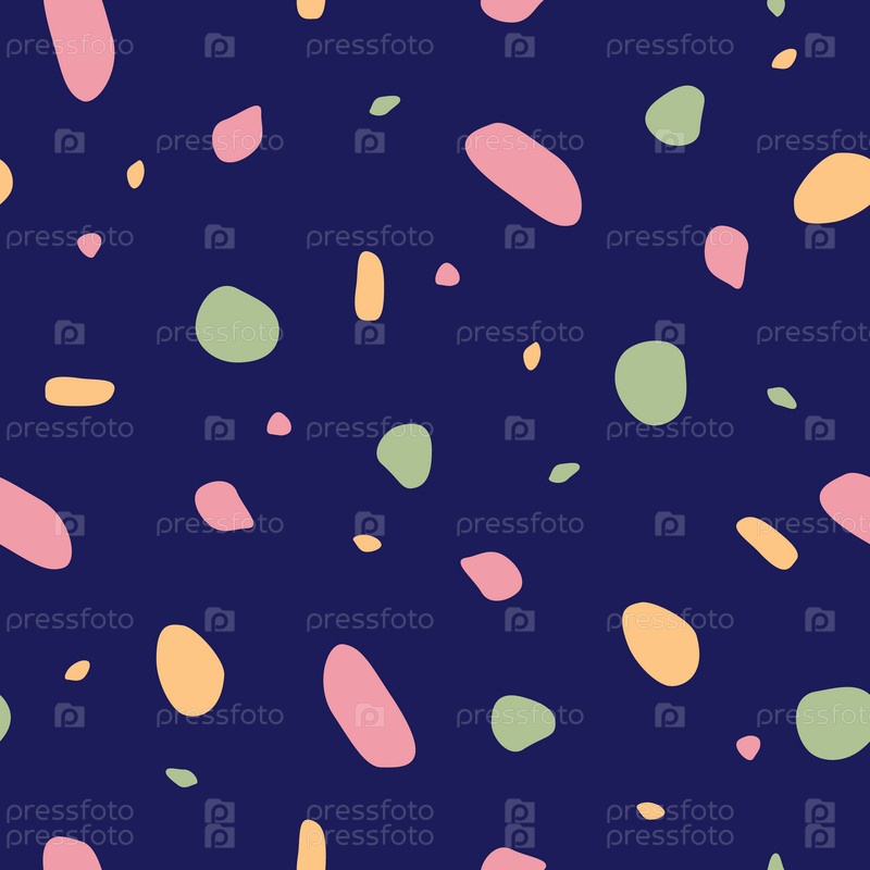 Симпатичный бесшовный узор с хаотичными бесформенными разноцветными пятнами на синем фоне