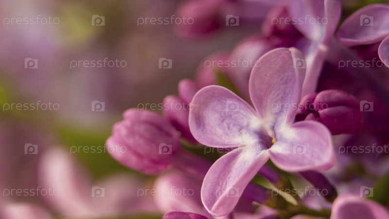Макро фото весенних сиреневых фиолетовых цветов, абстрактный мягкий цветочный фон. Красивый фиолетовый цветочный баннер