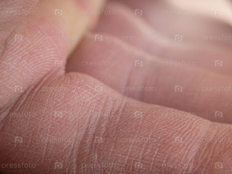 Макрофотография кожи руки человека с малой глубиной резкости. Концепция медицины и дерматологии. Детали текстуры кожи человека на пальцах кисти. Фон кожи человека