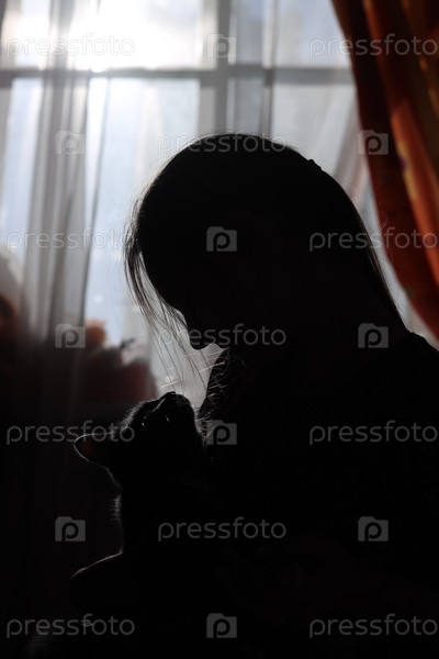 Девочка сидит с котом у окна