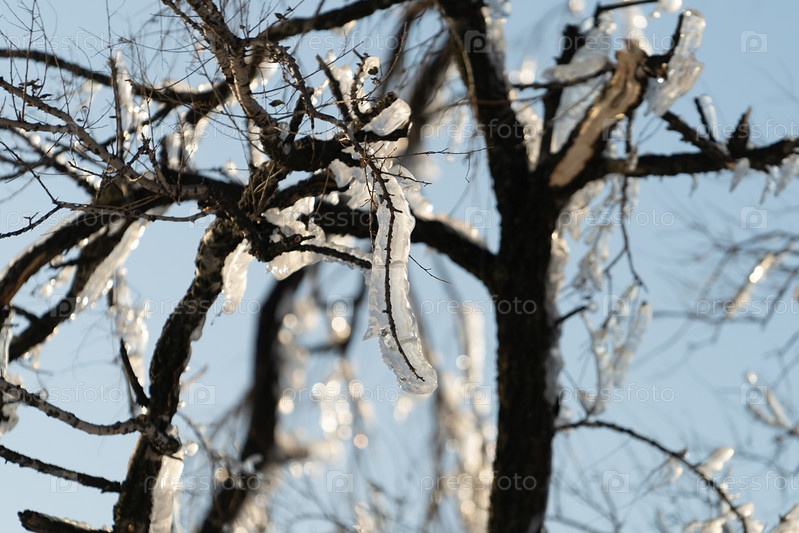 Естественный фон с кристаллами льда на растениях после ледяного дождя