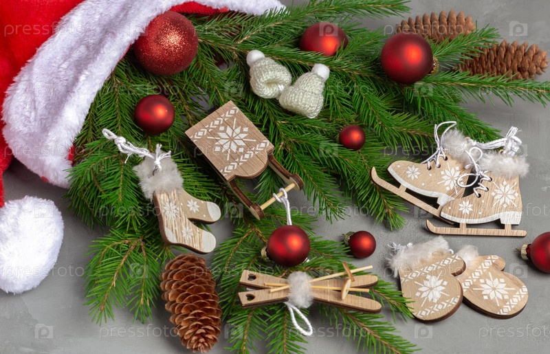 Новогодняя композиция. Поздравительная открытка с рождественскими украшениями