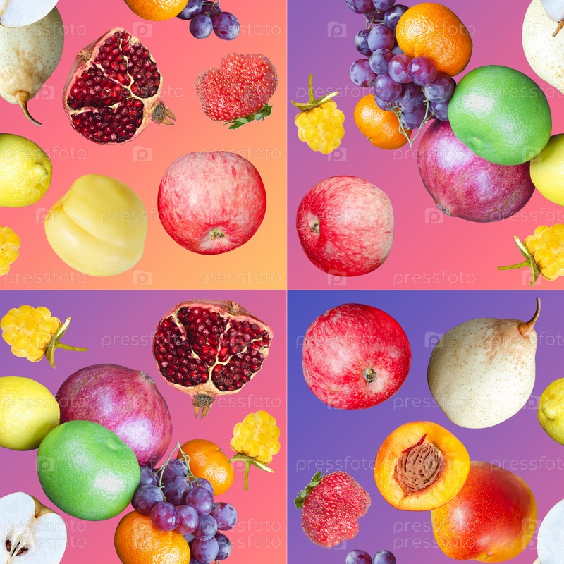 Бесшовный красочный узор с различными фруктами на цветном градиентном фоне