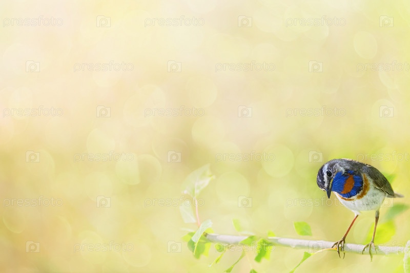 Летний размытый фон с красивой певчей птицей
