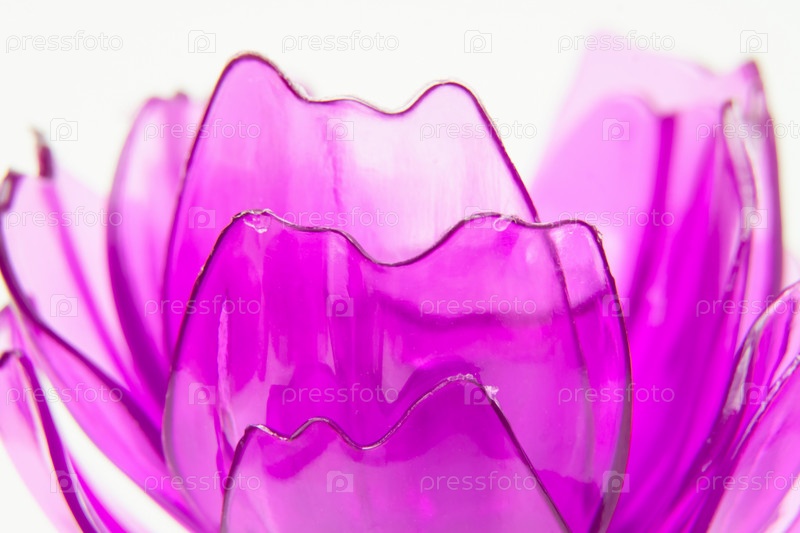 Фиолетовые пластиковые лепестки цветов на белом фоне