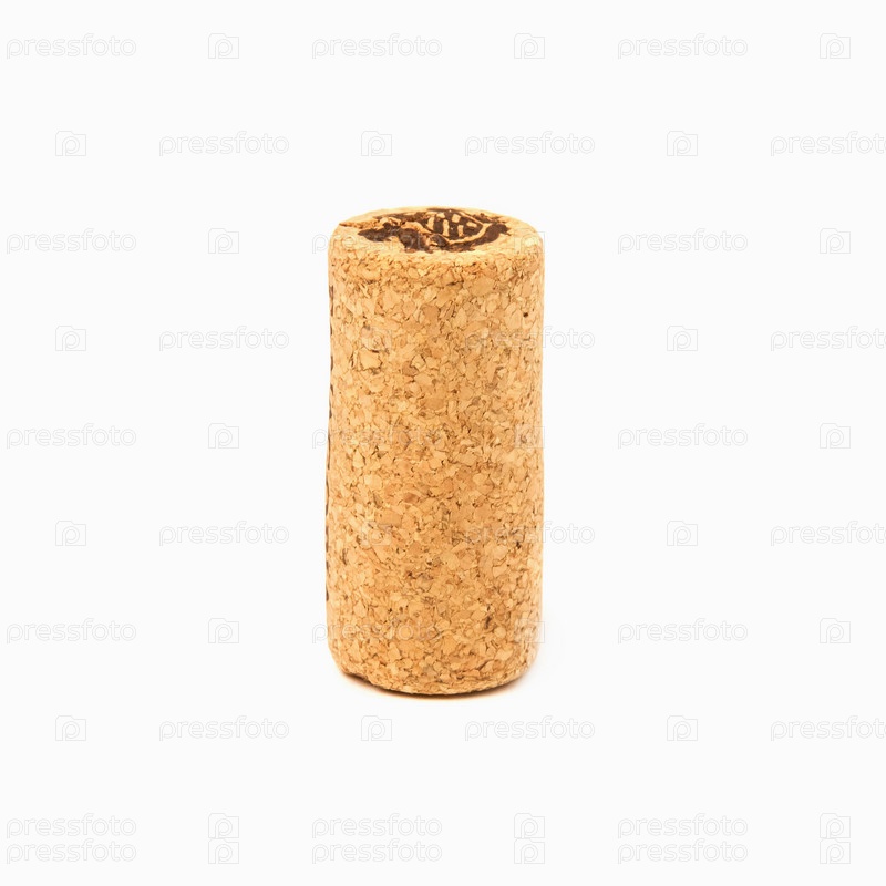 Бежевая натуральная круглая пробка из бутылки вина на белом фоне