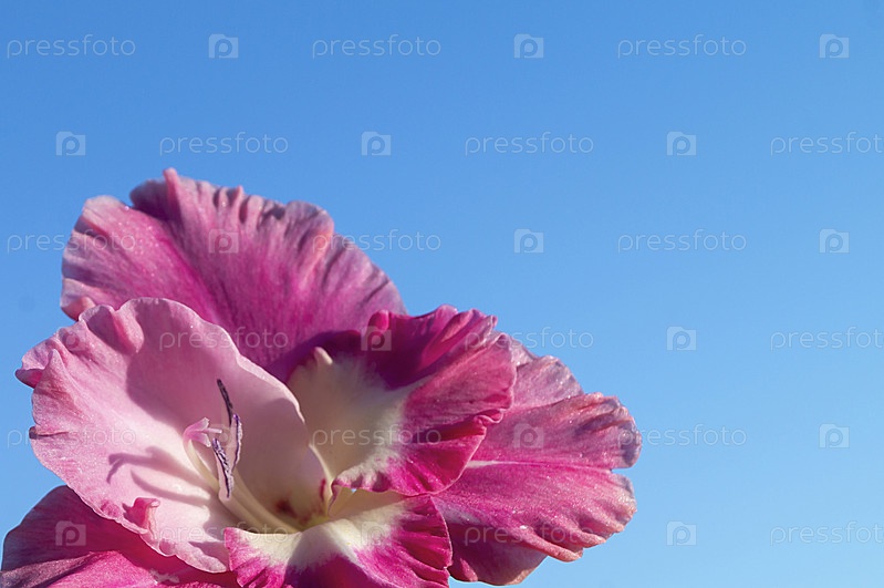Языческий лепесток гладиолуса на фоне голубого неба