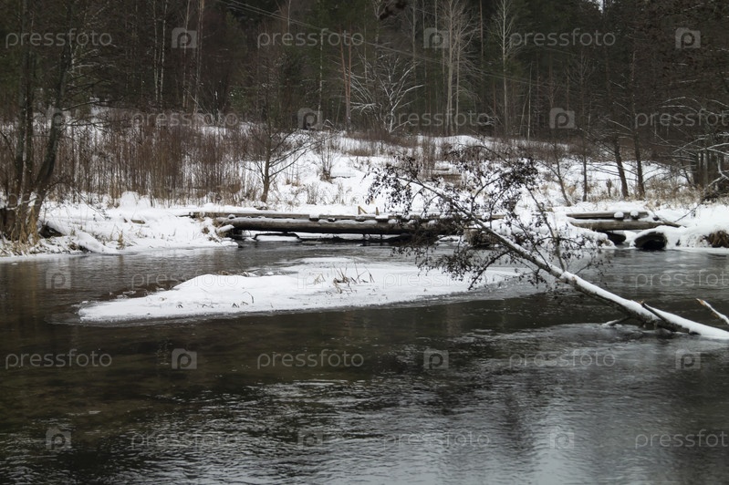 Деревянный мост через реку в лесу