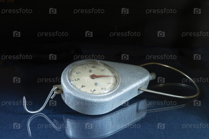 Старые ручные весы на стеклянном столе