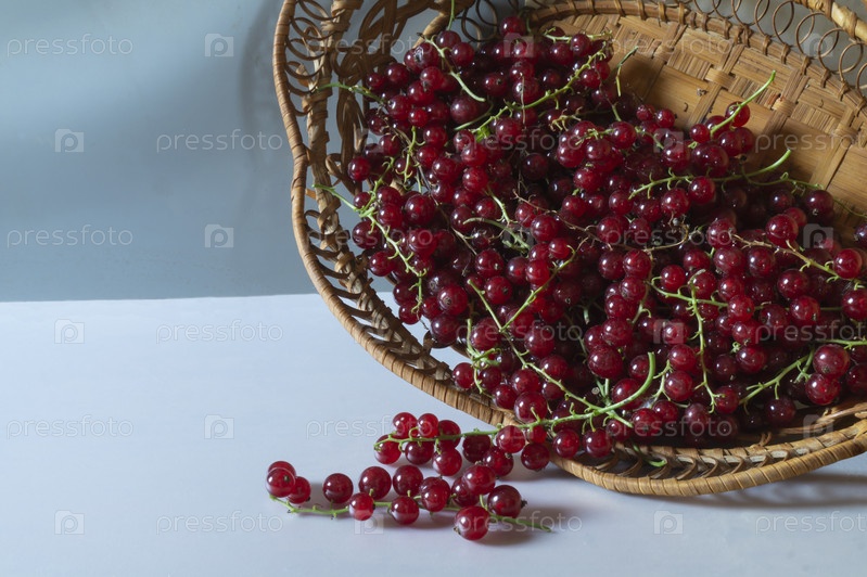 Красная смородина в корзине на белом столе