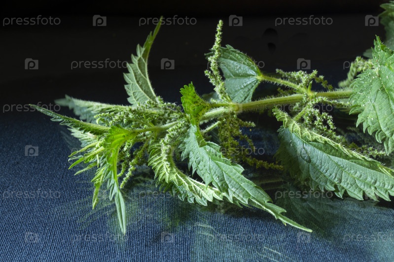 Ветка крапивы на столе с отражением