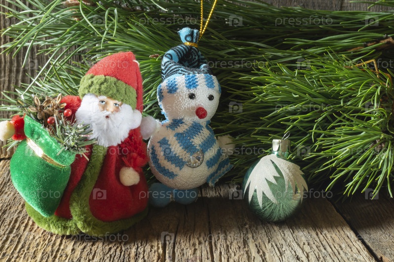Дед Мороз и снеговик под елкой на столе