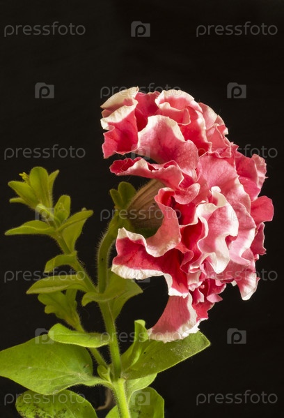 Красная двойная петуния на черном фоне