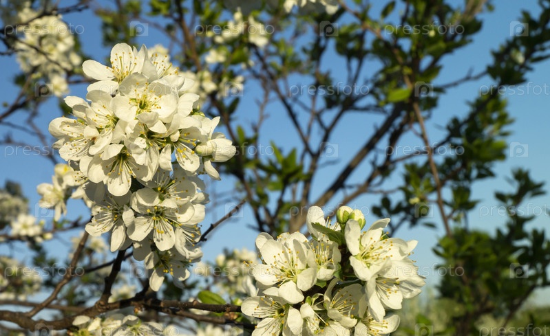 Весеннее цветение чернослива в саду