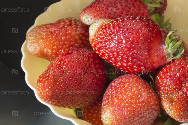 Красная клубника в тарелке крупным планом