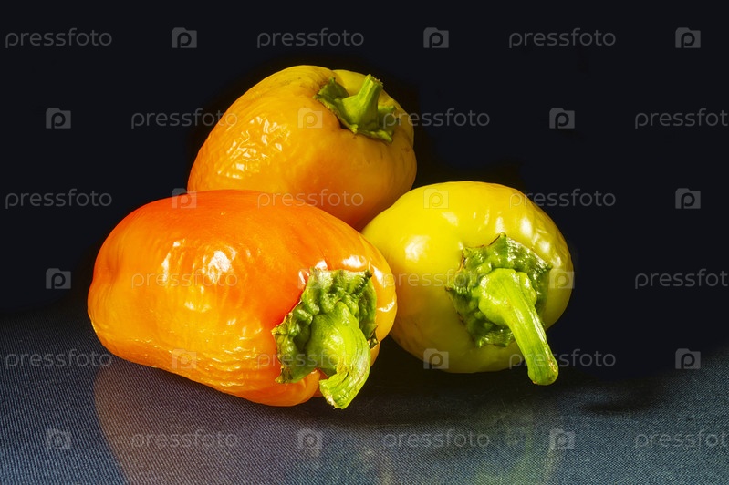 Желтый и оранжевый перец на черном фоне
