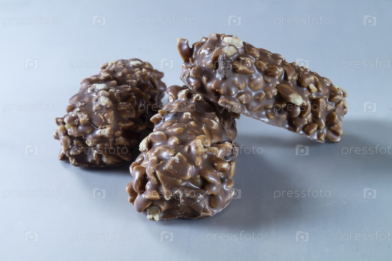 Шоколадные конфеты с орехами на светлом фоне
